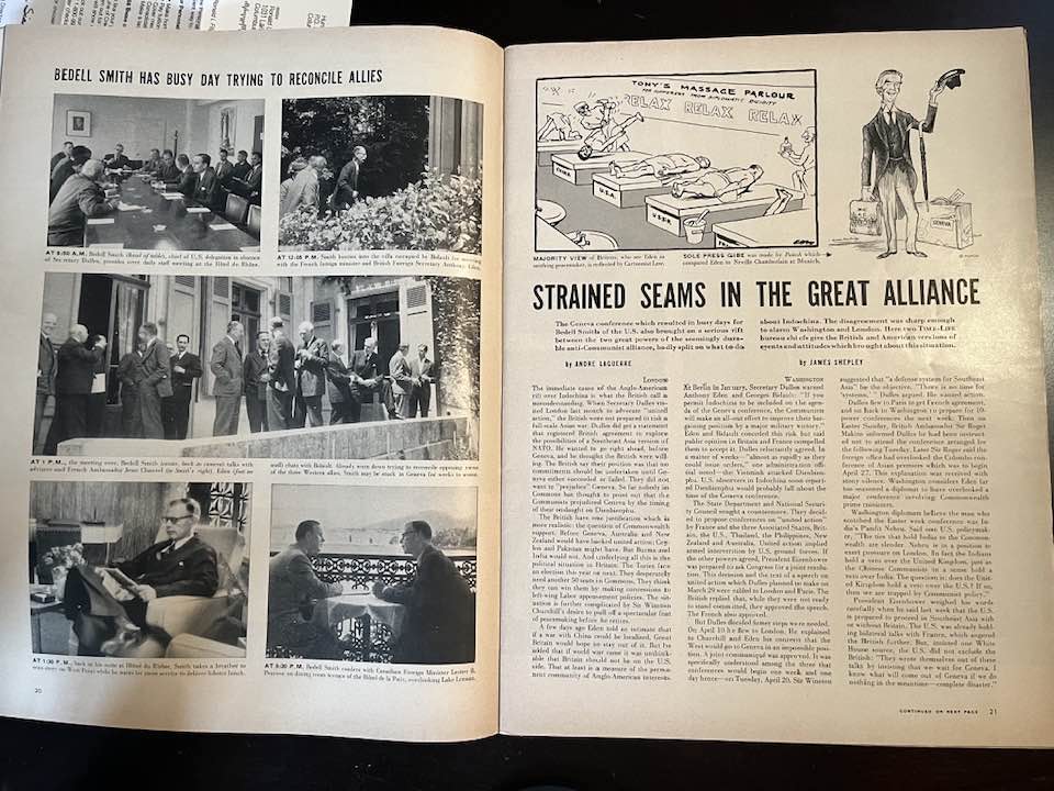 Life Magazine May 31, 1954. You’d be hard pressed to find a month in mid-century American history with more consequential events for the following decades than this one, and Life magazine was there. An article covers the French loss and retreat at the Battle of Dien Bien Phu and the subsequent Geneva Conference that led to the partition of Vietnam at the 17th Parallel. Another reports on the Brown vs Board of Education decision, which signaled the beginning of the Civil Rights era. We also learn that the Army hearings that finally brought down Joe McCarthy were under way.