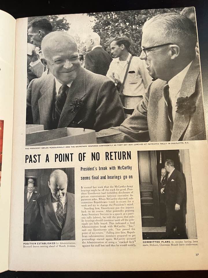 Life Magazine May 31, 1954. You’d be hard pressed to find a month in mid-century American history with more consequential events for the following decades than this one, and Life magazine was there. An article covers the French loss and retreat at the Battle of Dien Bien Phu and the subsequent Geneva Conference that led to the partition of Vietnam at the 17th Parallel. Another reports on the Brown vs Board of Education decision, which signaled the beginning of the Civil Rights era. We also learn that the Army hearings that finally brought down Joe McCarthy were under way.