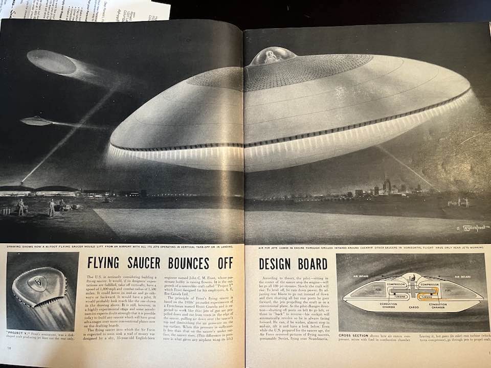 These threads would merge a decade later as the U.S. sent a massive military deployment to Vietnam, many of whom were black, brown and American Indian, in an ill-fated attempt to roll-back the communist threat officially labeled as the “domino theory,” a phrase coined in 1954 by Eisenhower in justifying initial military support for the American installed government in South Vietnam. This issue truly contains the seeds of the sixties. There is also an article on the science of flying saucers and an electrical schematic for “A Sensible Solution For An Appliance-Loaded House.”